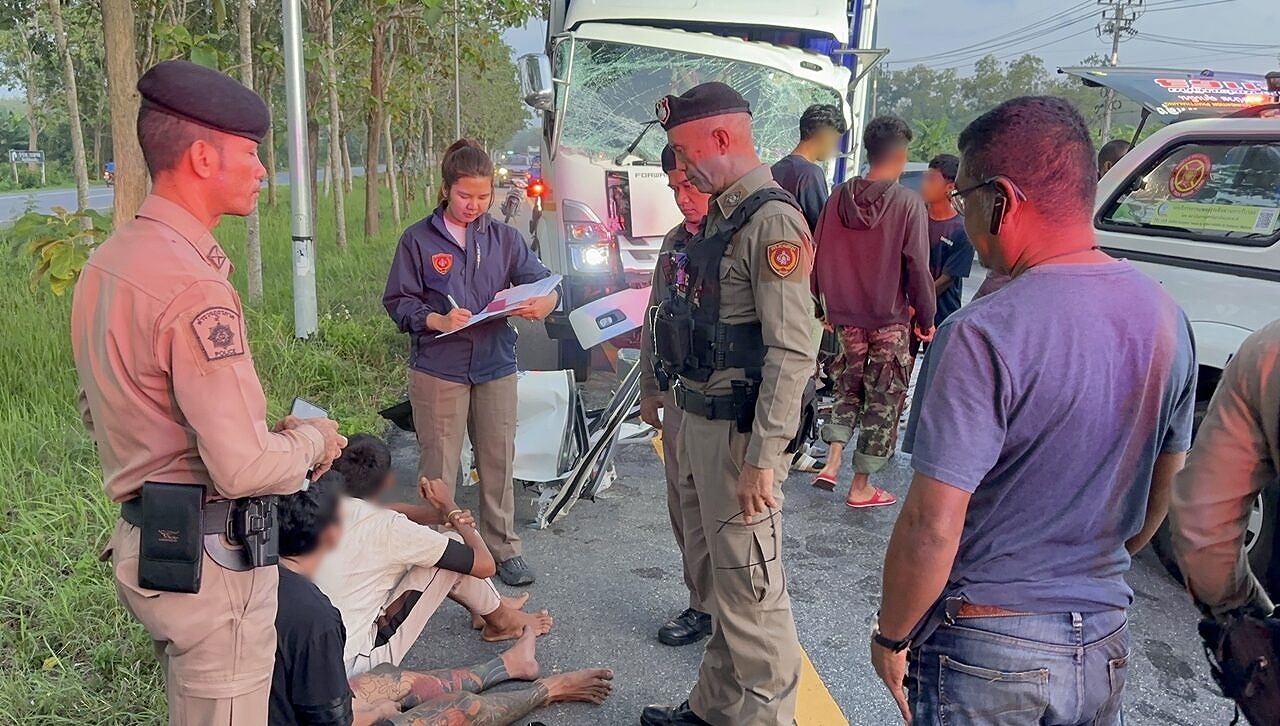 1月13日、タイ南部パッタルン県クワンカヌン郡のアジアハイウェイ南行き車線で、6輪トラックがセメントトラックに追突する事故が発生した。