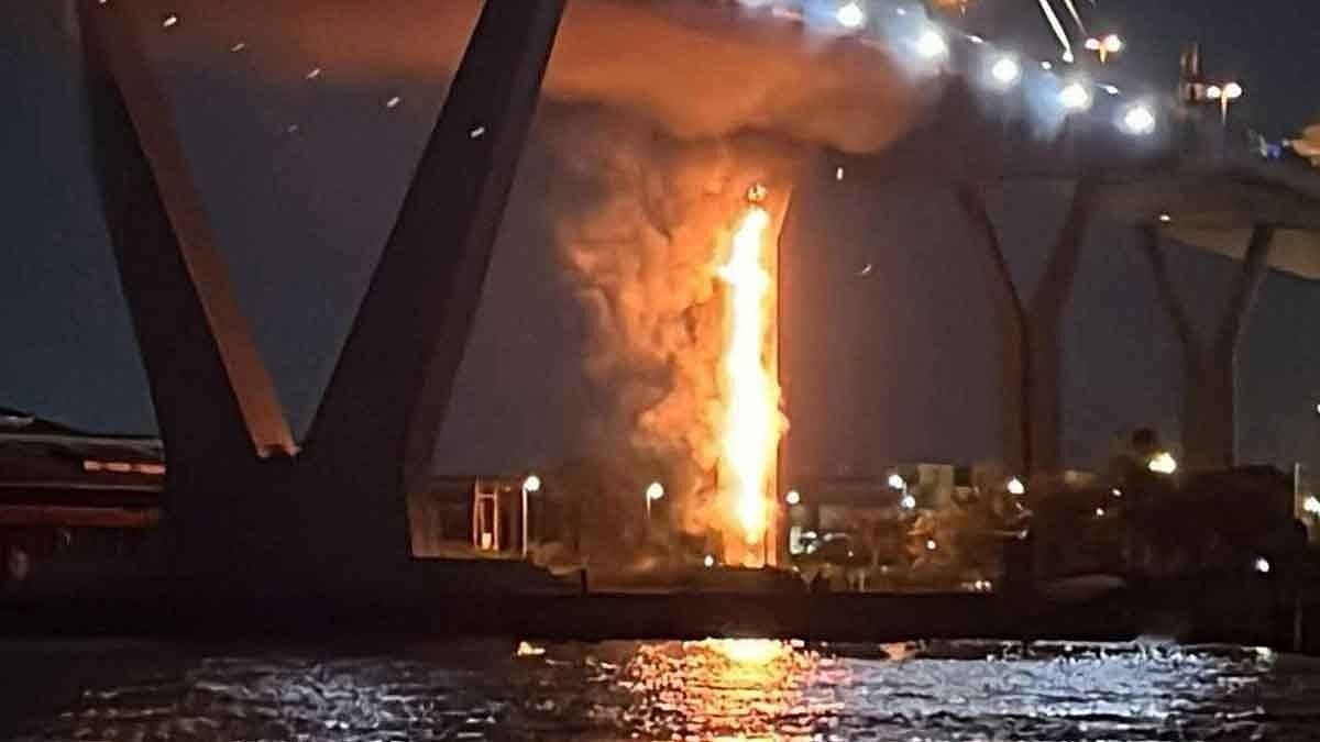 1月15日、19時ごろ、チャオプラヤー川をまたぐタイのレインボーブリッジ、サムットプラーカーン県のプミポン橋2号の橋脚付近で火災が発生した。
