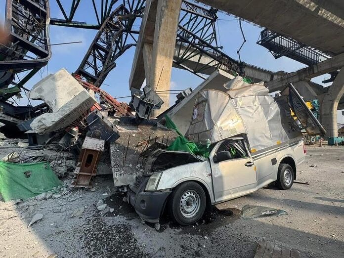 速報の時点で、死亡者は2名確認され、自動車2台がクレーンの下敷きとなり大破していた。