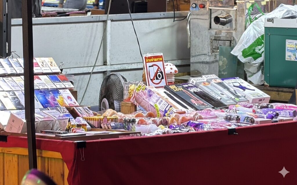 性ドラッグ、性具、複数ブランドのタバコが堂々と並べられ、観光都市パタヤのイメージに悪影響を及ぼしていると報告されている。