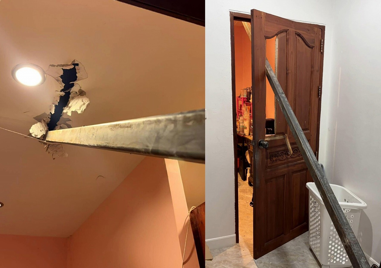 【動画】タイはおちおち夜も眠れない。落下した鉄筋が住宅の中までぶっ刺さり~プーケット