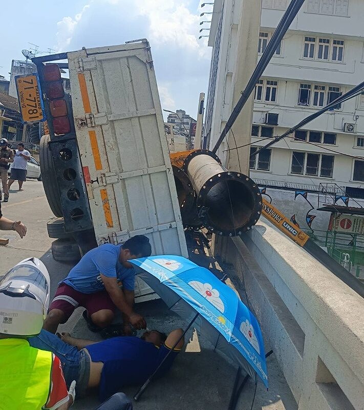 1月17日午後1時52分ごろ、バンコク都プラナコーン区チャックラポン通りのノララットサターン橋付近で、クレーンを積載した6輪トラックが横転する事故が発生した。