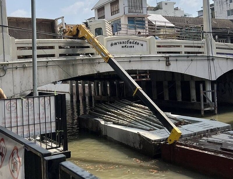 タイでまたまたまたまたクレーン事故! バンコクの運河に転落寸前、2人負傷。