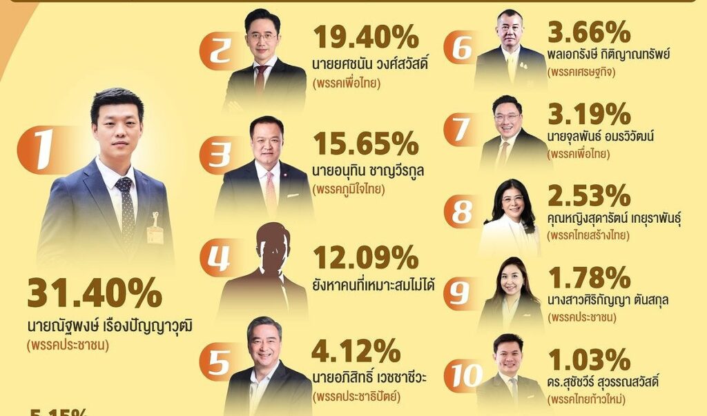 ヨットチャナン(タイ貢献党):19.40%