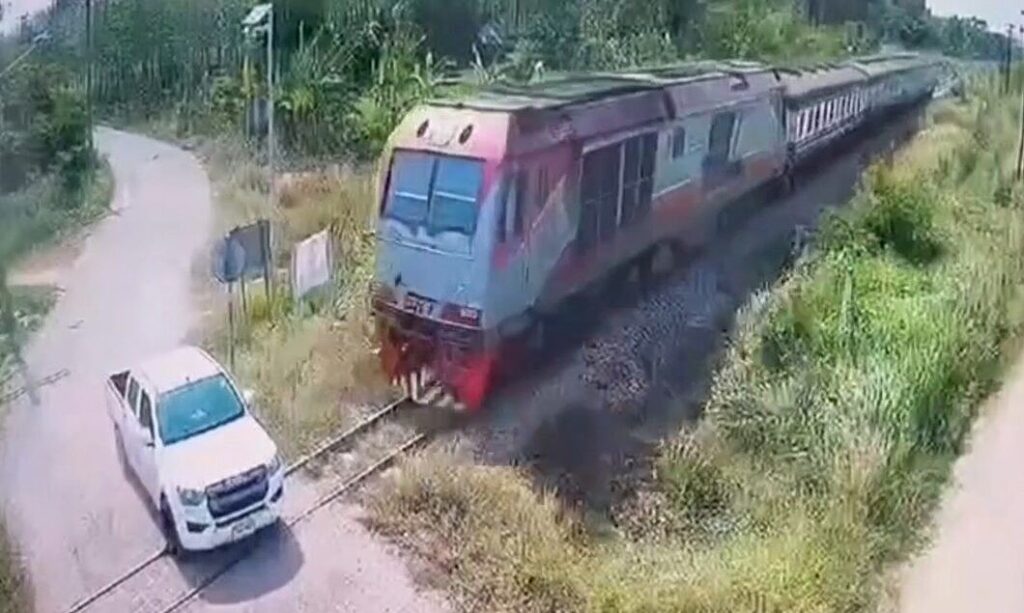 タイ南部、踏切でピックアップトラックが列車に衝突、1名死亡1名重傷。