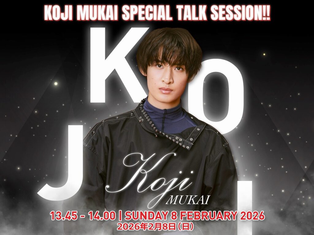 向井康二は、2026年2月8日(日)13時45分から14時00分まで、屋外会場 KAZE STAGE(Square B) にて行われる Talk Session に登場する。