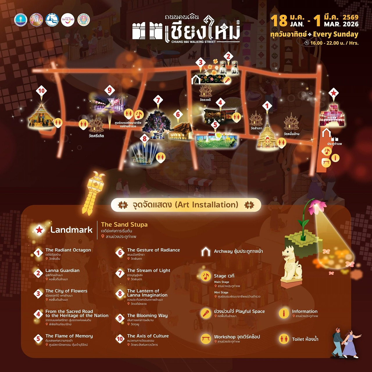「Tha Phae Remix:Chiang Mai Remake」(ターペー・リミックス:チェンマイ・リメイク)をテーマに、アート、光、デジタルカラー、現代的なパフォーマンス演出を、旧市街の雰囲気や文化遺産、現代的ライフスタイルと融合させた内容となっている。さらに、チェンマイを訪れる観光客に近隣県への周遊も促し、大都市から新興観光地や地方都市への国内旅行を後押しし、2026年初頭の観光需要を継続的に盛り上げる狙いがある。