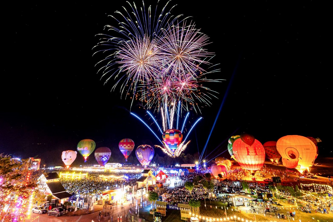 期間中は、世界13カ国から集まった30基以上の熱気球が、チェンライの空を華やかに演出する。