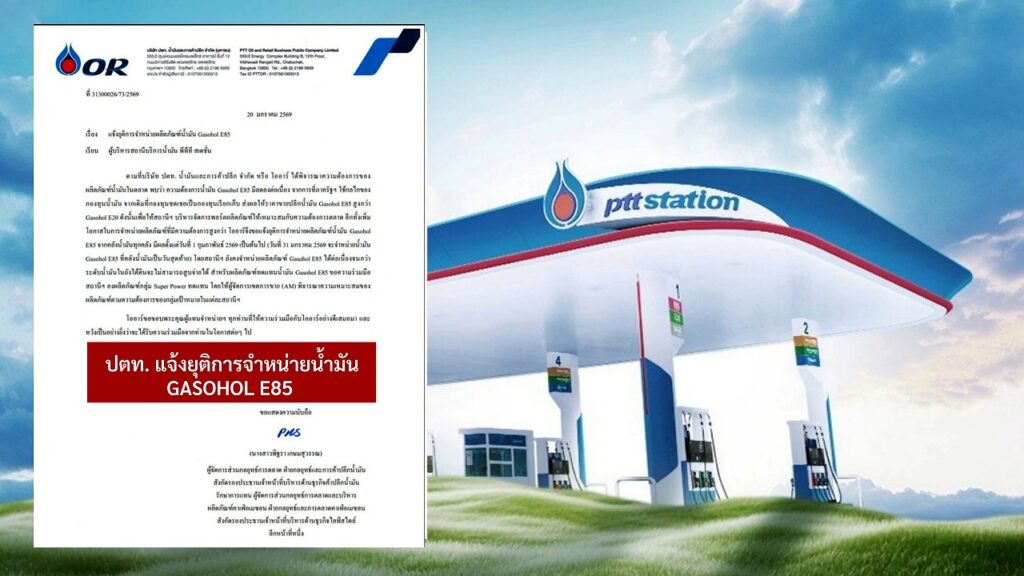 PTT(タイ石油公社)は、市場での燃料需要を分析した結果、ガソホールE85の需要が継続的に減少しているとして、2026年2月1日から全国の貯蔵所でE85の出荷・販売を終了すると販売代理店に通知した。
