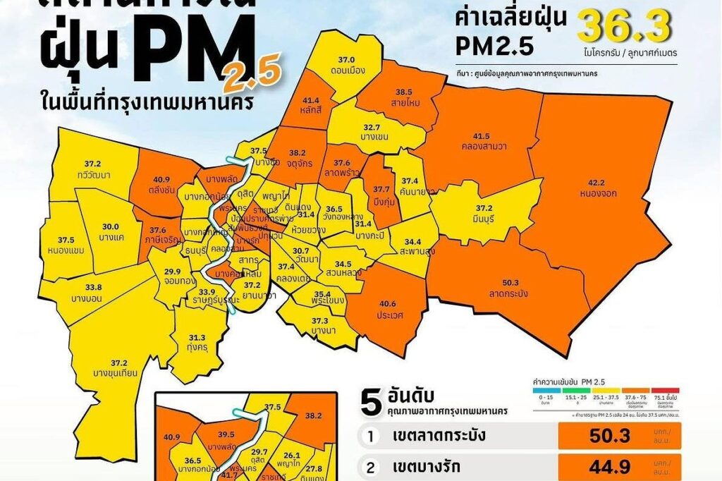 バンコクを含むタイ22県でPM2.5深刻化。バンコクは1月24~29日にかけて悪化傾向に。