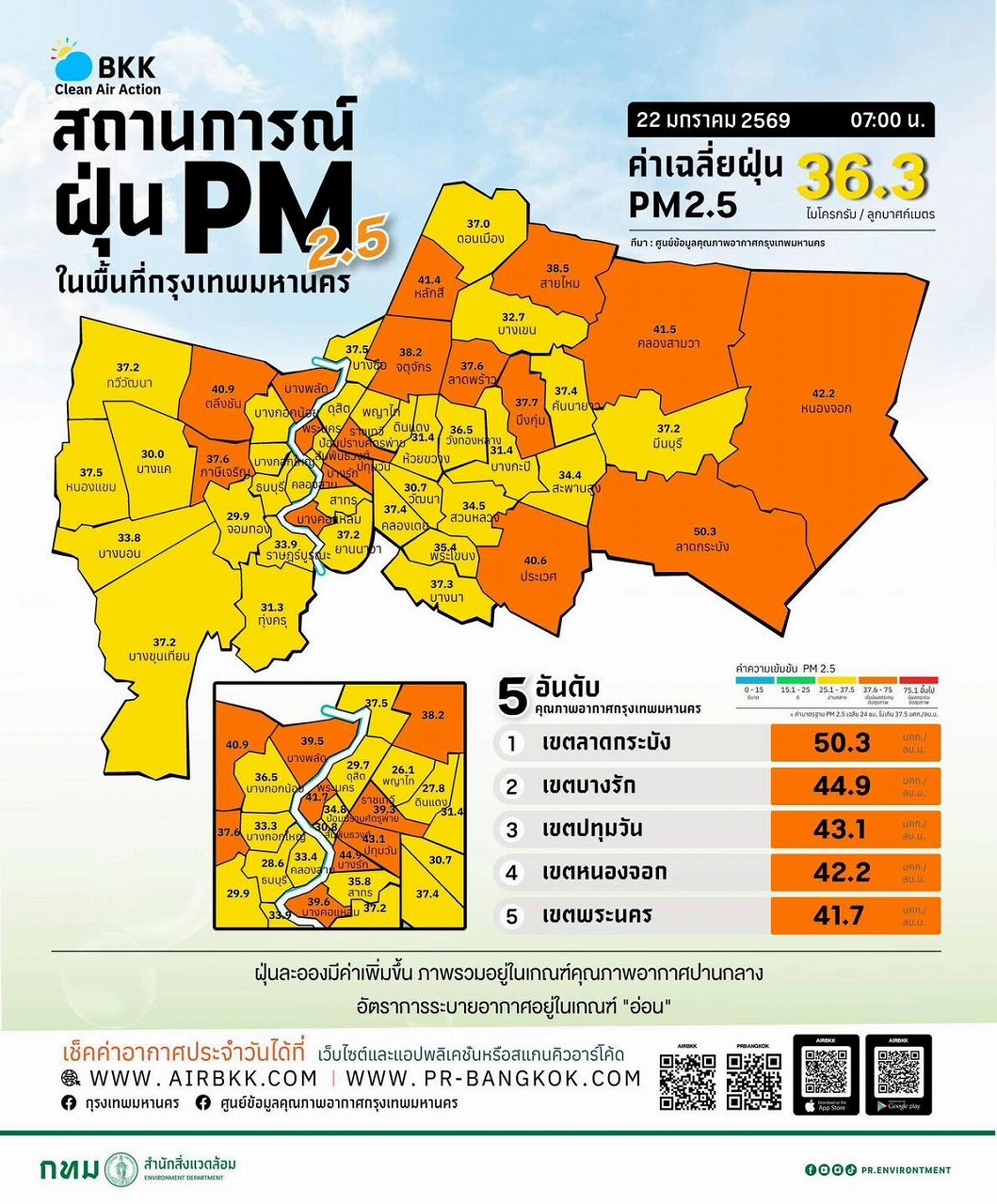 1月22日、タイ公害管理局は、国内の空気質監視結果を報告した。