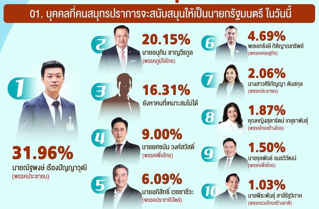 タイ国立開発行政学院(NIDA)が実施した世論調査によると、サムットプラカーン県では国民党とその党首であり首相候補のナッタポン氏が、有権者の最も支持される選択肢であることが明らかになった。
