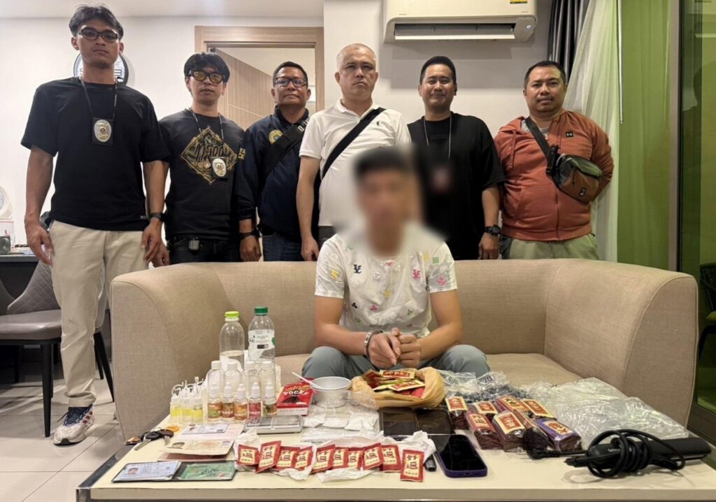 容疑者は観光客や歓楽街目的の客層を狙い、鎮静作用の強い薬物入りポッドを1個1,200バーツで販売していたという。
