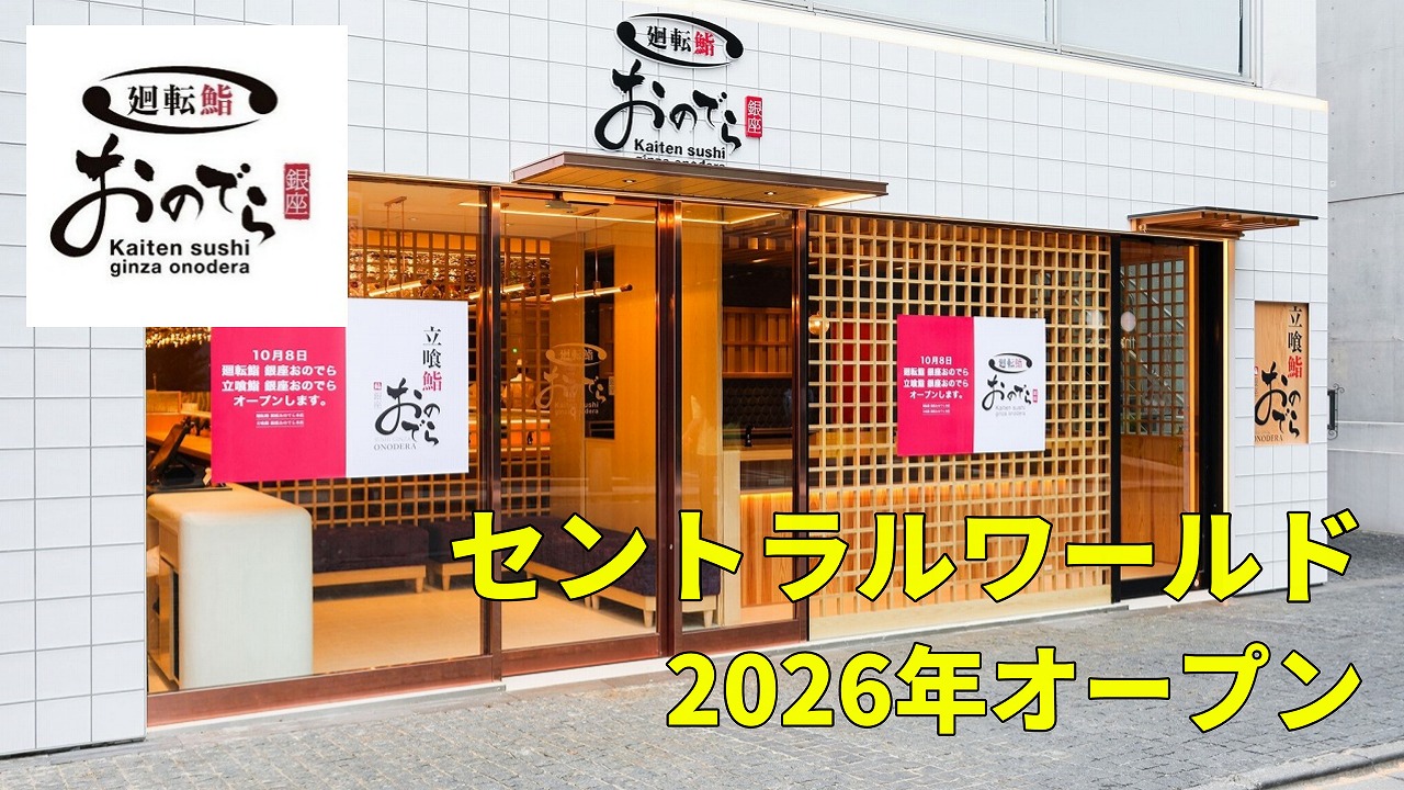 『廻転鮨 銀座おのでら』タイ第1号店はセントラルワールド。2026年第3四半期オープン予定。