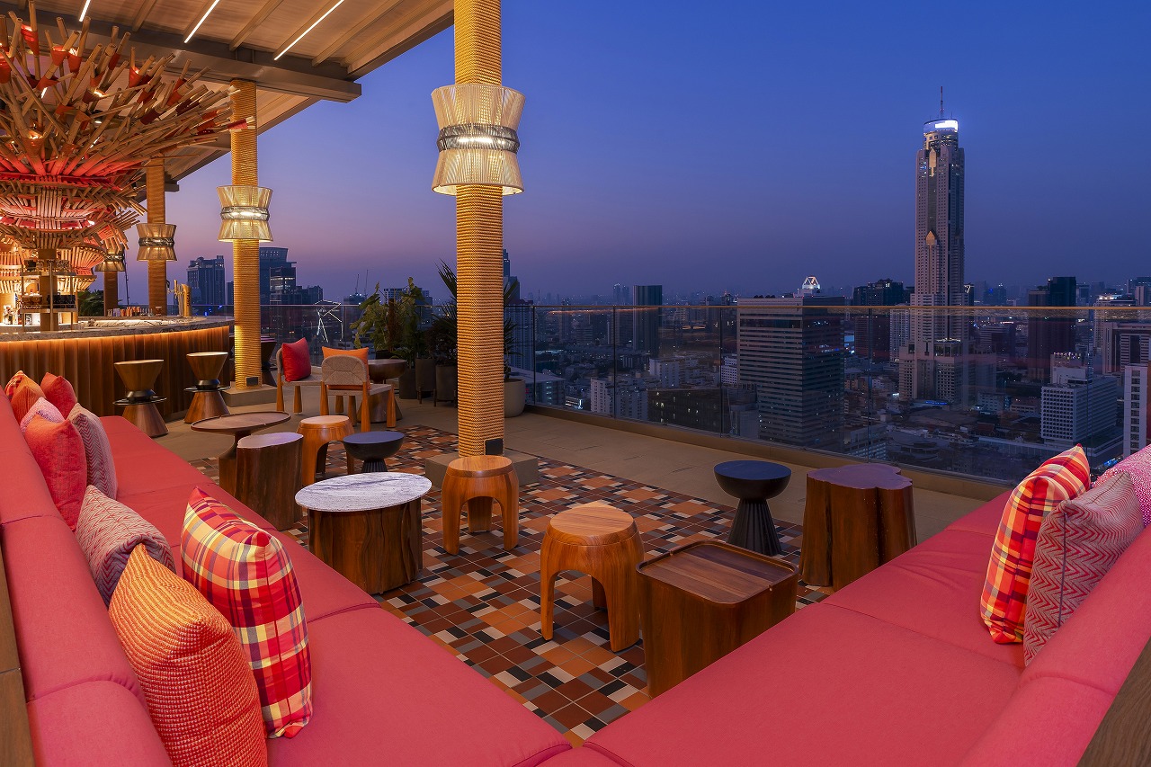 ホテル最上階に近い32階に位置する同ルーフトップは、360度のパノラマ・シティビューを誇り、サンセットから深夜まで楽しめる、バンコク屈指の社交・祝宴スポットとして注目を集めている。