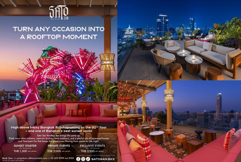タイ初のモクシーブランドであるモクシー・バンコク・ラチャプラソン(Moxy Bangkok Ratchaprasong)は、開業したばかりのサトーサン・ルーフトップバーにおいて、新たなイベント向けオファーの提供を開始した。
