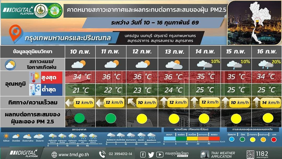 2月10日から16日までの7日間予報を発表し、北部や東北部など上部タイを中心に気温の上昇と朝方の霧が広がる見通しを示した。