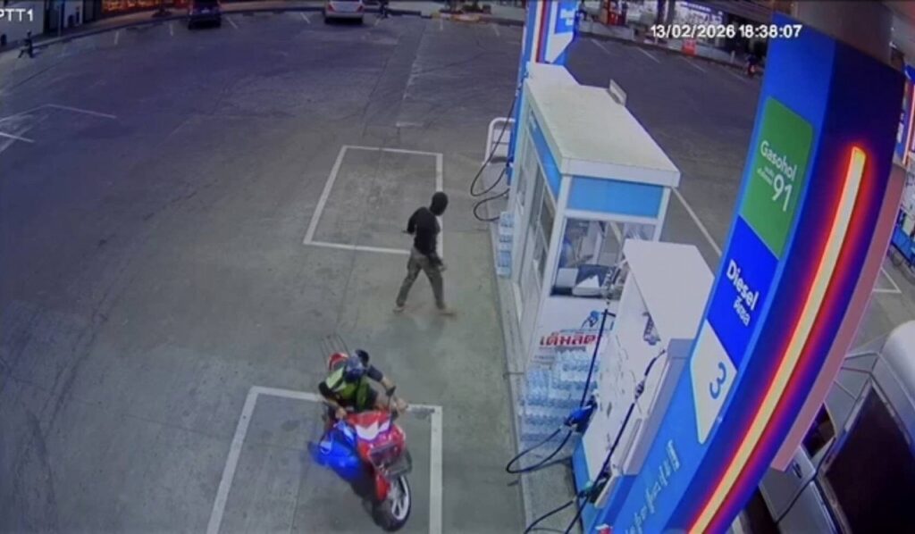 メーラマート警察署によると、事件が起きたのは13日午後7時ごろ。男2人がバイクでスタンドに侵入してきたという。