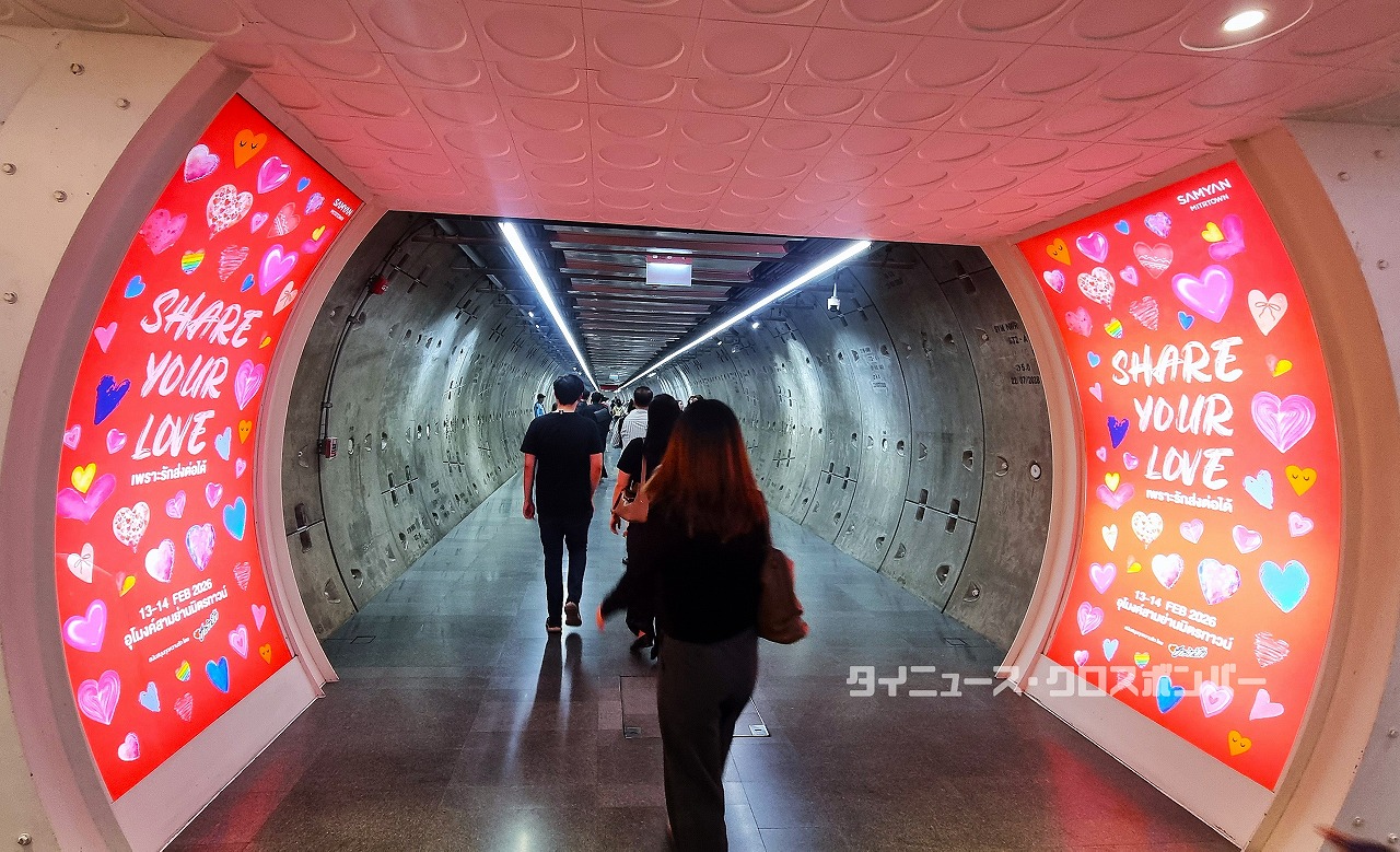 MRTサムヤンミットタウンとの連絡通路を派手なデコレーションで飾り、来館する人々を楽しませてくれる。