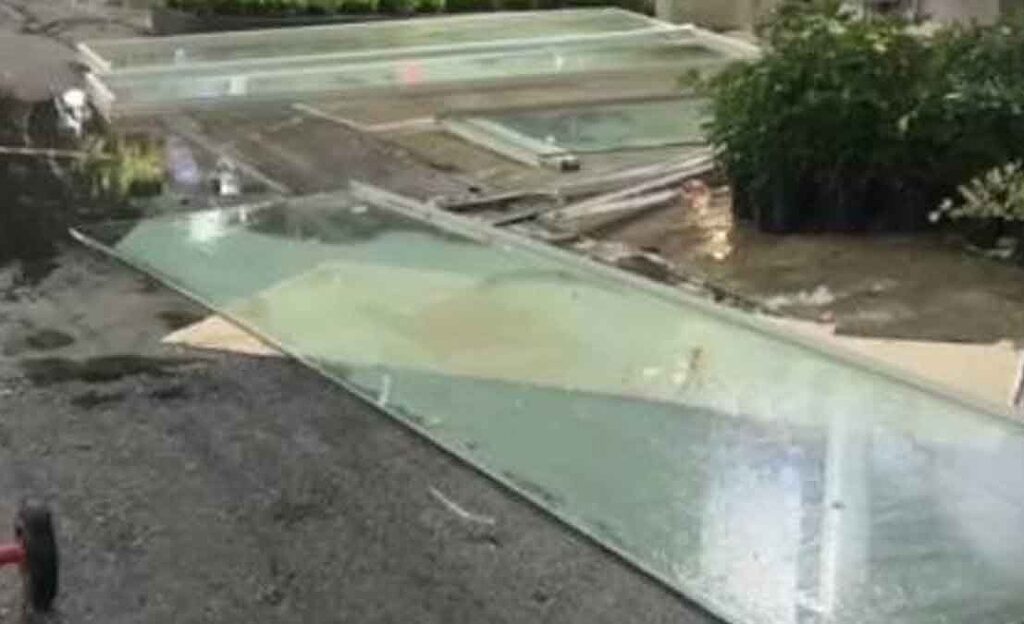 当時、現場周辺では強い雨と突風が吹き荒れており、フードコートを囲む大きなガラス製の壁が突然倒れたという。