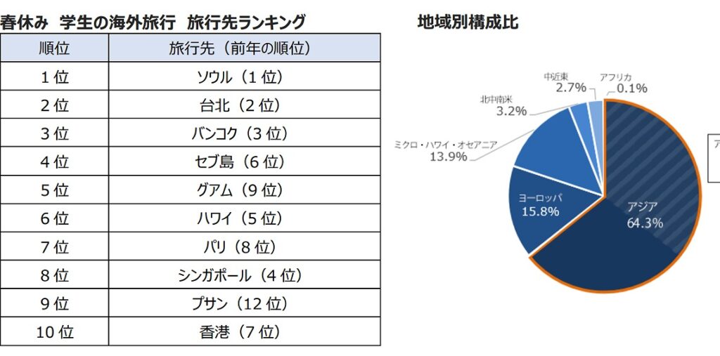 株式会社エイチ・アイ・エス(本社:東京都港区 以下、HIS)は、2026年2月・3月における旅行予約状況から、学生の海外旅行予約動向について下記のとおりにまとめました。