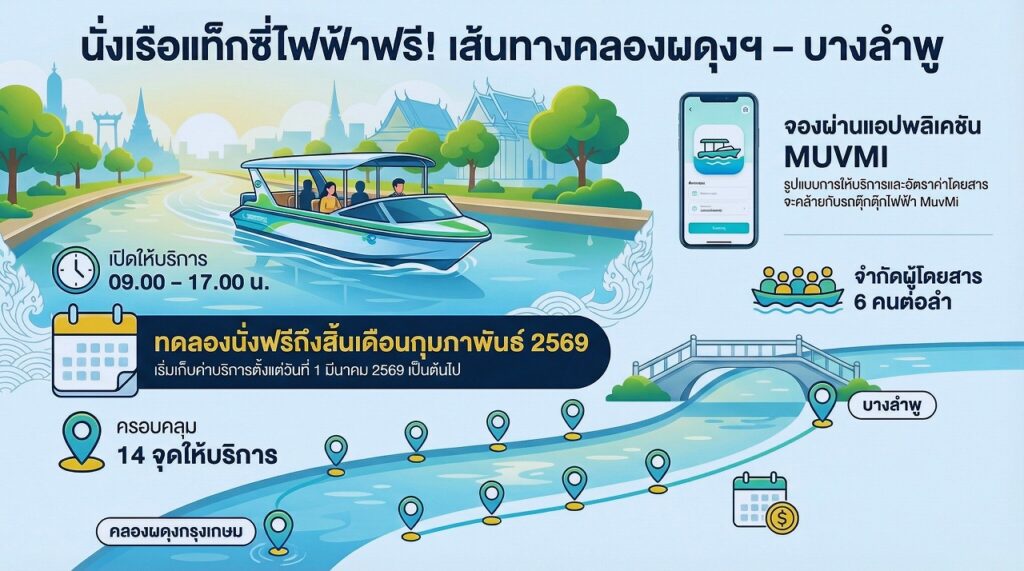 2月19日、バンコク都は、クローン・パドゥン・クルンカセーム(คลองผดุงกรุงเกษม)からバンラムプー(บางลำพู)を結ぶ電動ボートタクシーの無料運航を開始した。