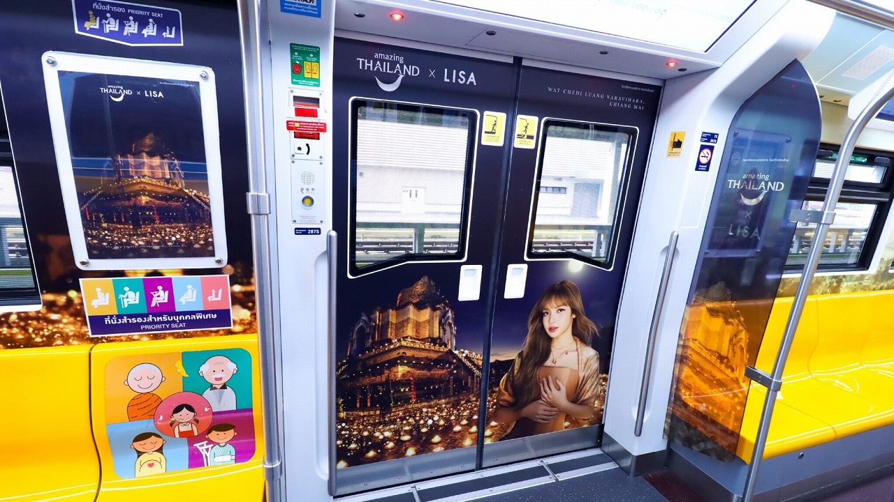 タイ国内中がリサでいっぱい! BTS 車両全面ラッピングは5月まで。リサ・パワーでタイ旅行をPR。