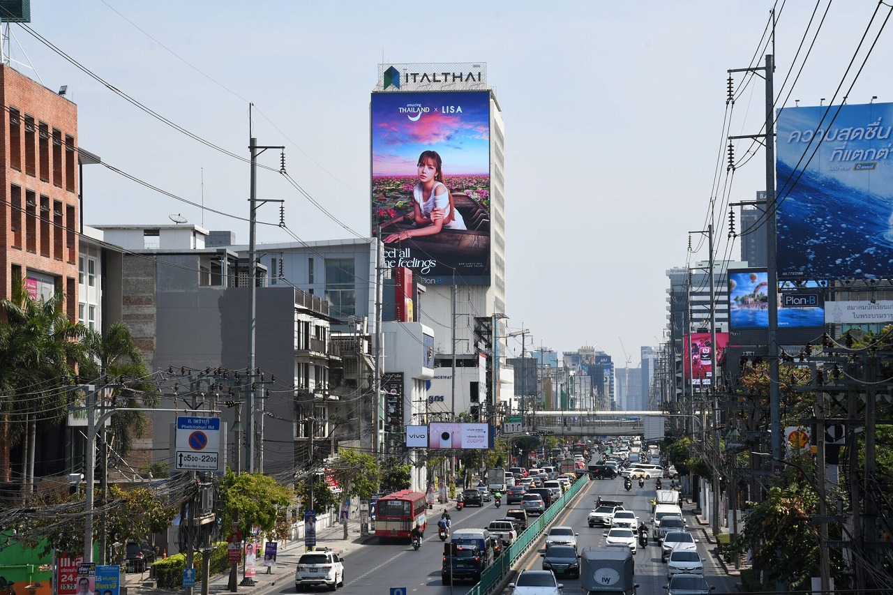 地方都市でもプーケット、ウドンタニー、チョンブリー、チェンマイ、ランパーンなどの主要交差点や商業エリアに掲出し、全国規模で認知拡大を図っていく。