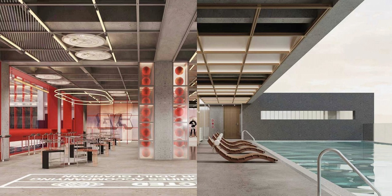 また、冷房完備のバドミントンコート7面、プロ仕様の屋内バスケットボールコート、5人制サッカー場、25メートルのハイドロセラピープール、健康志向の飲食エリアなども整備。