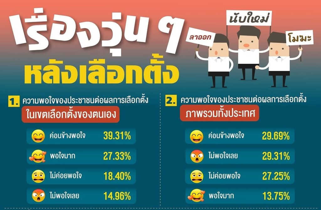 - NIDAタイ世論調査、自身の選挙区の選挙結果にほぼ満足、しかし全国的な結果には不満露わ。
