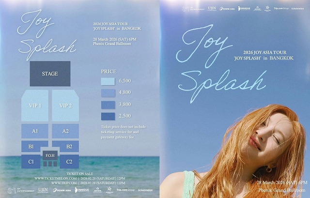 2026 JOY ASIA TOUR ‘JOY SPLASH’ in BANGKOKは、2026年3月28日(土)開催。チケットは2026年2月28日正午より ticketmelon.com および trip.com にて発売開始。
