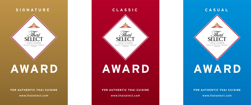 タイ国商務省国際貿易振興局(DITP)がタイ料理の認知度・信頼度向上のために、日本にありながら本場のタイ料理を味わえるレストランに対して与える基準認定マークで、1998年に制度がスタート、タイ料理のシェフとして訓練と経験を積んでいること、タイ香り米やタイの調味料を用い本場の味付けを再現していることや、タイらしい雰囲気と上質なサービスでお客様をもてなしていることが求められます。