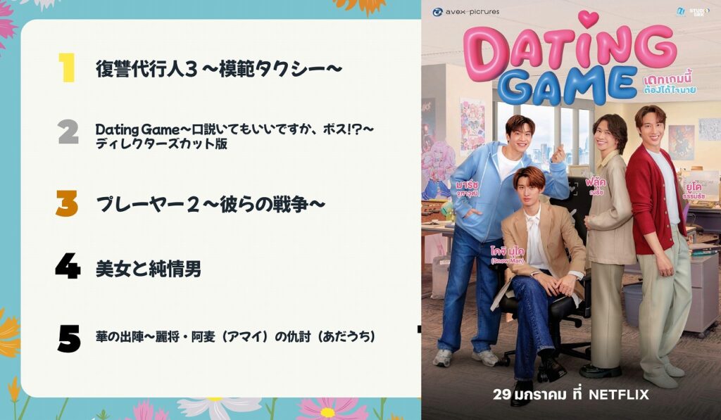 2026年1月のLemino韓流・アジア人気ランキング!2位に向井康二主演『Dating Game~口説ボス』