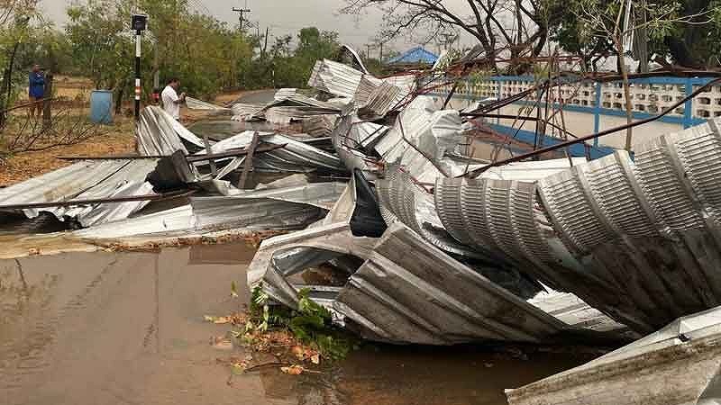 暴風雨と雹がタイ東北部ブリーラム県を直撃。学校屋根崩壊、住宅50戸超に被害。