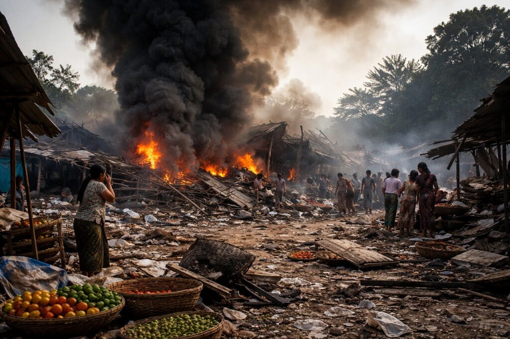 ミャンマー軍が市場で無差別空爆。ラカイン州で女性子供を含む民間人17名死亡。