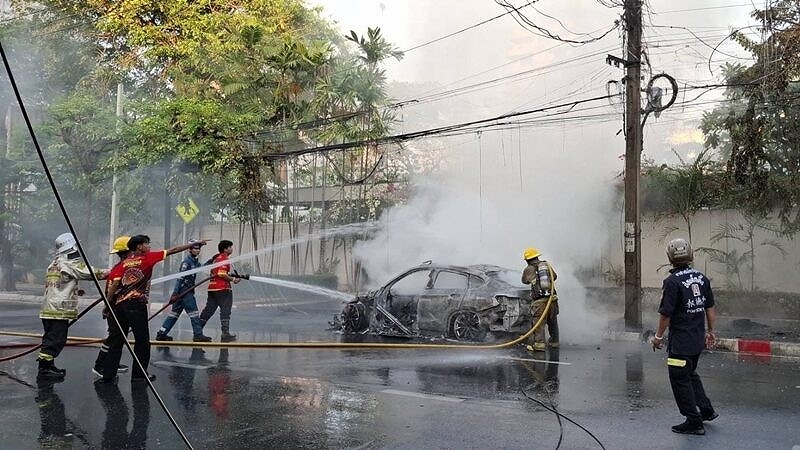 3月1日午後5時36分ごろ、バンコクのウィッタユ通り(ワイヤレス通り)のスイス大使館付近で、乗用車火災が発生したとの通報が当局に寄せられた。
