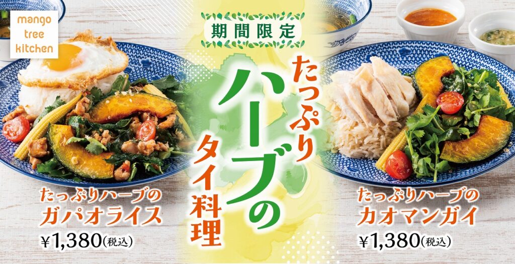 アークランドサービスホールディングス株式会社の子会社、海外の本場の味を日本で展開する株式会社ミールワークス(本社:東京都千代田区、代表取締役社長:大内 勇一)は、タイ・バンコクに本店をもつ「マンゴツリー」の姉妹店で本格タイ料理をカジュアルに楽しめる「マンゴツリーキッチン」にて「たっぷりハーブのガパオライス」を、「マンゴツリーキッチン”カオマンガイ”」にて「たっぷりハーブのカオマンガイ」を2026年3月4日(水)より期間限定で販売開始いたします。