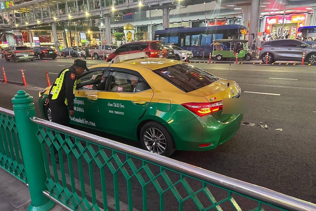バンコク・セントラルワールド前でタクシー等の交通一斉取り締まり。観光のイメージアップへ。