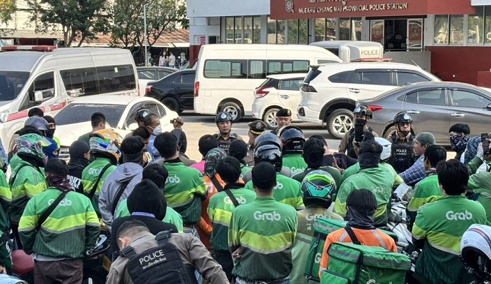 チェンマイのデリバリーライダー数百人が警察署を包囲! 同業者に暴行を働いた容疑者に圧力。