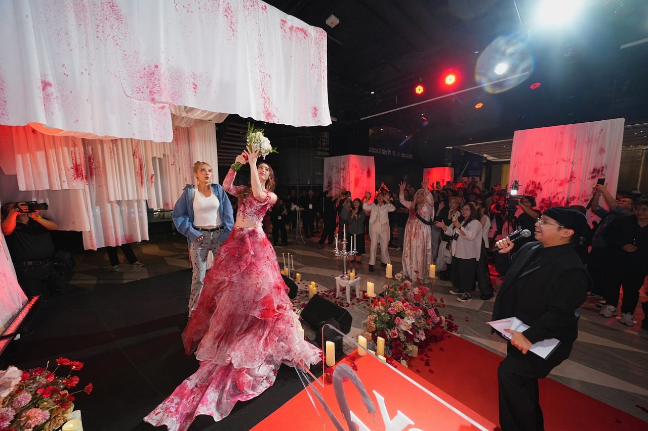会場では血をテーマにした装飾やフード、フォトブースなどが用意され、来場者は作品の世界観を体験。没入型の演出により、“命がけのゲーム”の雰囲気が再現された。