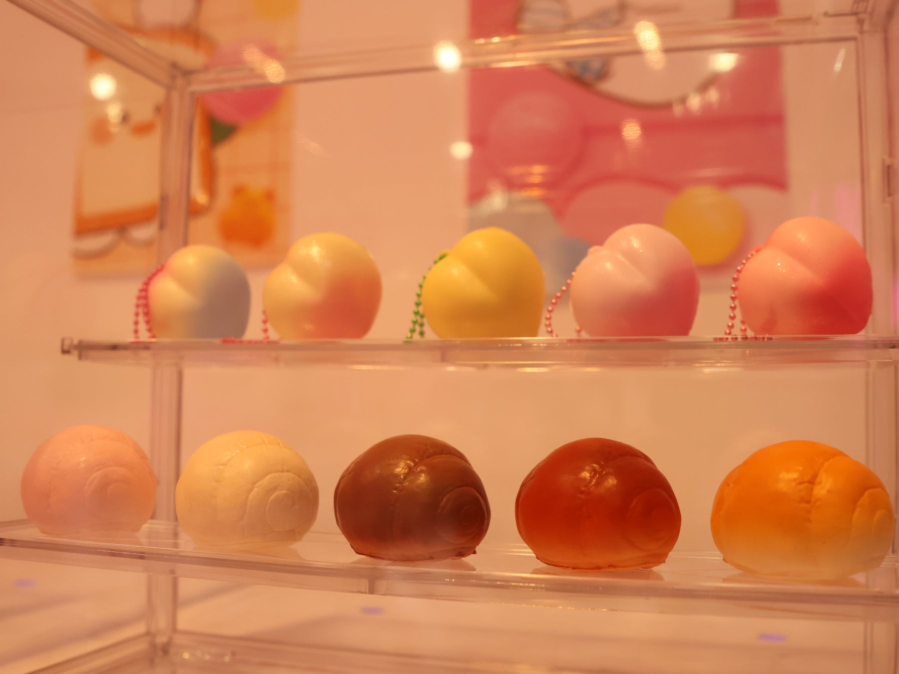 “推し活”ブームの広がりに合わせて、バッグに付けられるチャーム付きスクイーズも大人気です。メロンパンのスクイーズにはメロンの香り、ピーチのスクイーズにはピーチの香りといったように、それぞれのアイテムに甘くて心地よい香りがついており、見た目だけでなく香りでも楽しめるのが魅力です。