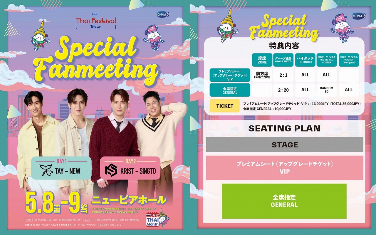 このSPファンミーティングの開催により、今年のタイフェスティバル東京も、例年以上に熱気あふれるイベントとなること間違いなし!と言えるだろう。