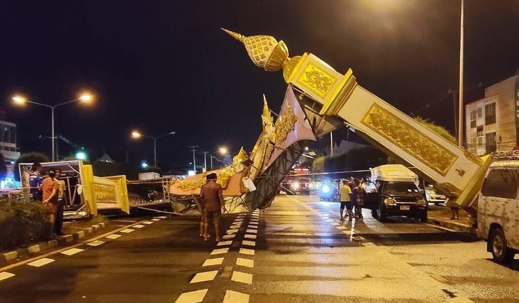 タイ国境の街シーサケートに夏の嵐。住宅被害で寝たきり男性が死亡。記念ゲートも倒壊。
