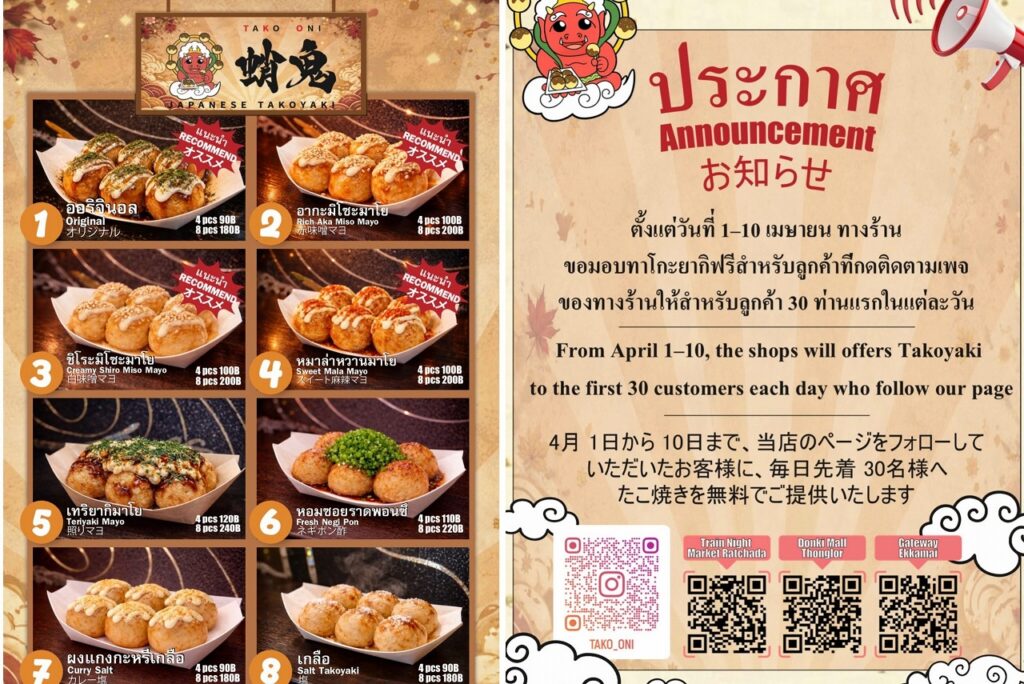 大阪発のたこ焼き店「蛸鬼(TAKOONI)」がバンコクでのオープンを記念し、2026年4月1日から10日までの期間限定で、各日先着30名に無料でたこ焼きを提供するキャンペーンを実施する。