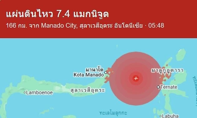 【速報】インドネシア沖でM7.4の強震。津波警報発令、周辺国にも影響の恐れ。