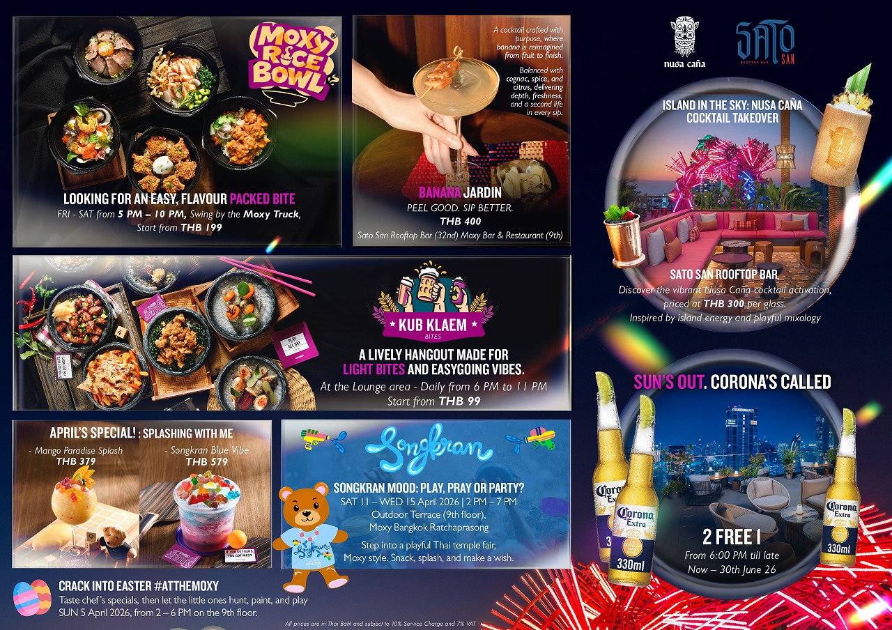 モクシー・バンコク、4月の特別プログラム発表! ソンクラーンや屋上体験で多彩な企画展開。