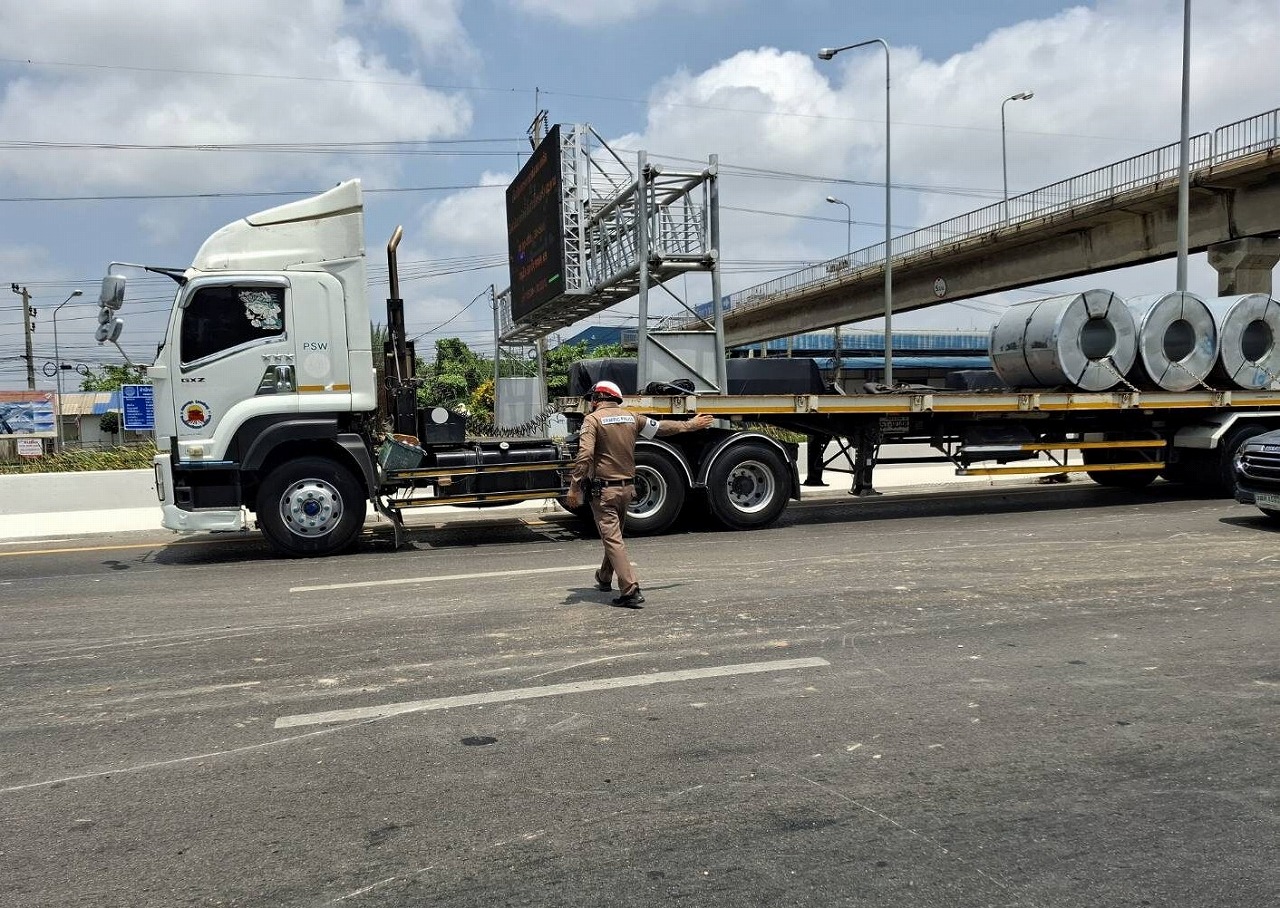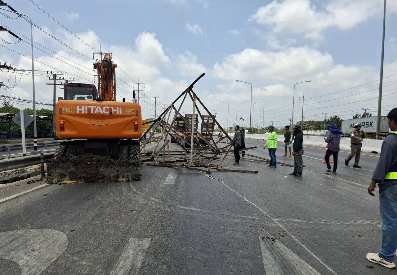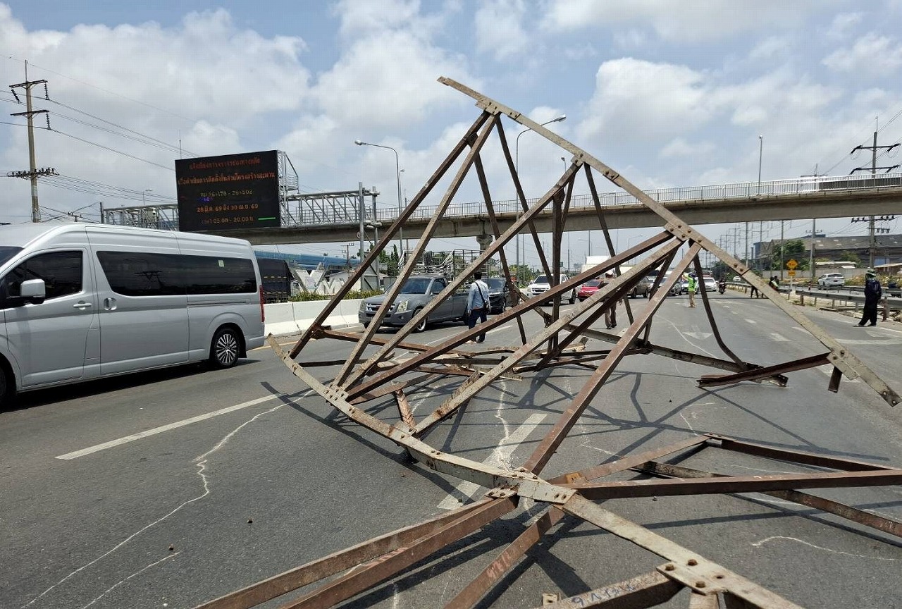 事故の様子はSNS上で拡散され、巨大な鉄骨フレームがバワット・バンナムウォン入口付近のUターン地点近くの2車線をふさいでいる様子が確認された。