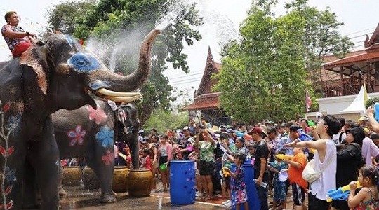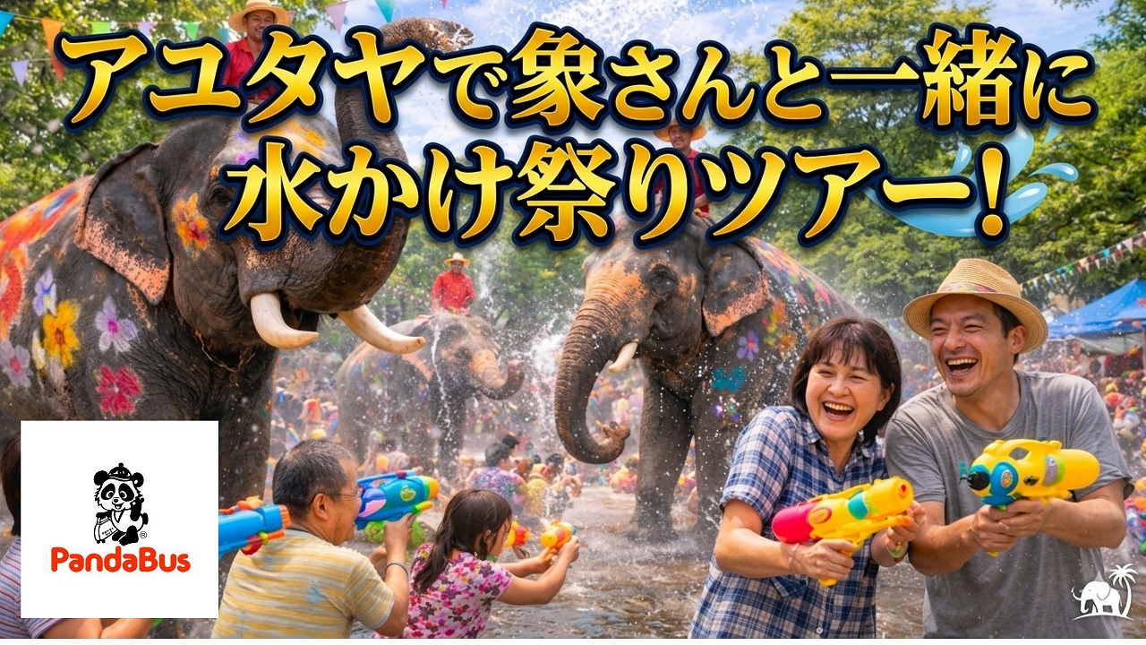 ソンクラーンと言えばこれ! アユタヤで象さんと一緒に水かけ祭りツアー!~パンダバス