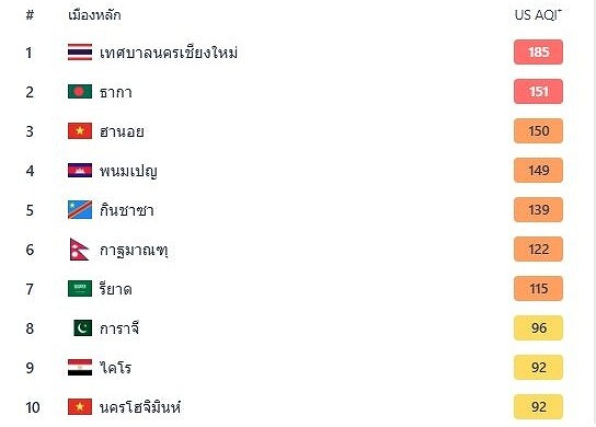 チェンマイがPM2.5に覆われ、世界で最も大気汚染が深刻な都市ランキングで11日連続1位となった。