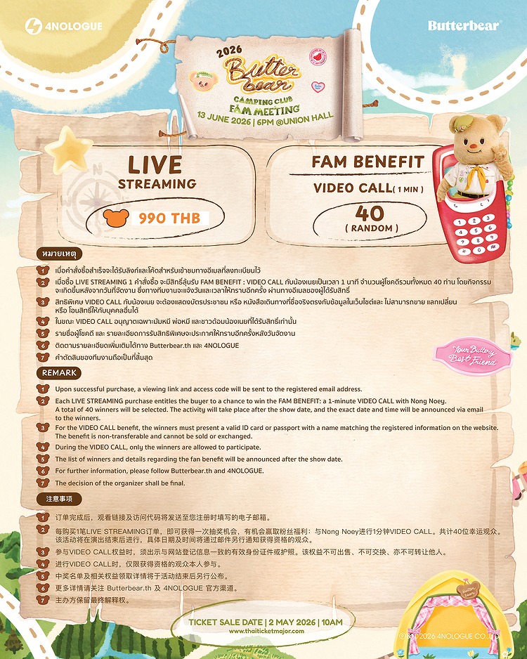 詳細やお問い合わせは、Butterbear.th および 4NOLOGUE の公式SNSをご確認ください。